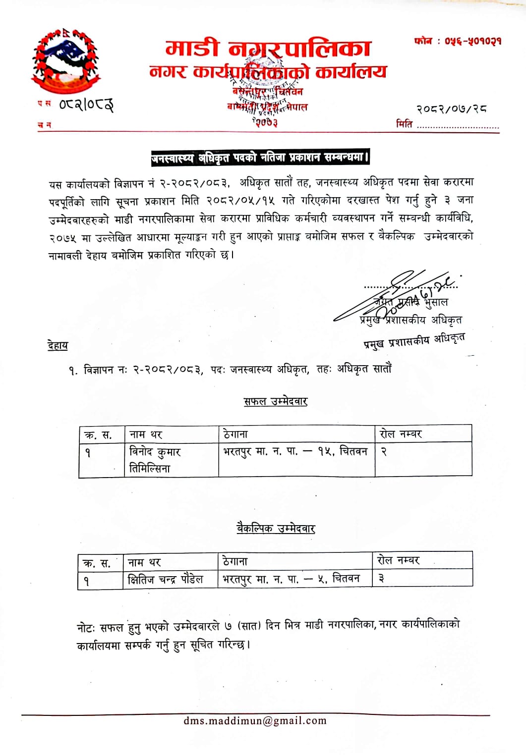 जनस्वास्थ्य अधिकृत पदको नतिजा प्रकाशन सम्बन्धमा