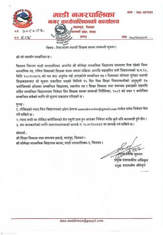 रिक्त पदमा स्थायी शिक्षक सरुवा सम्बन्धी सूचना