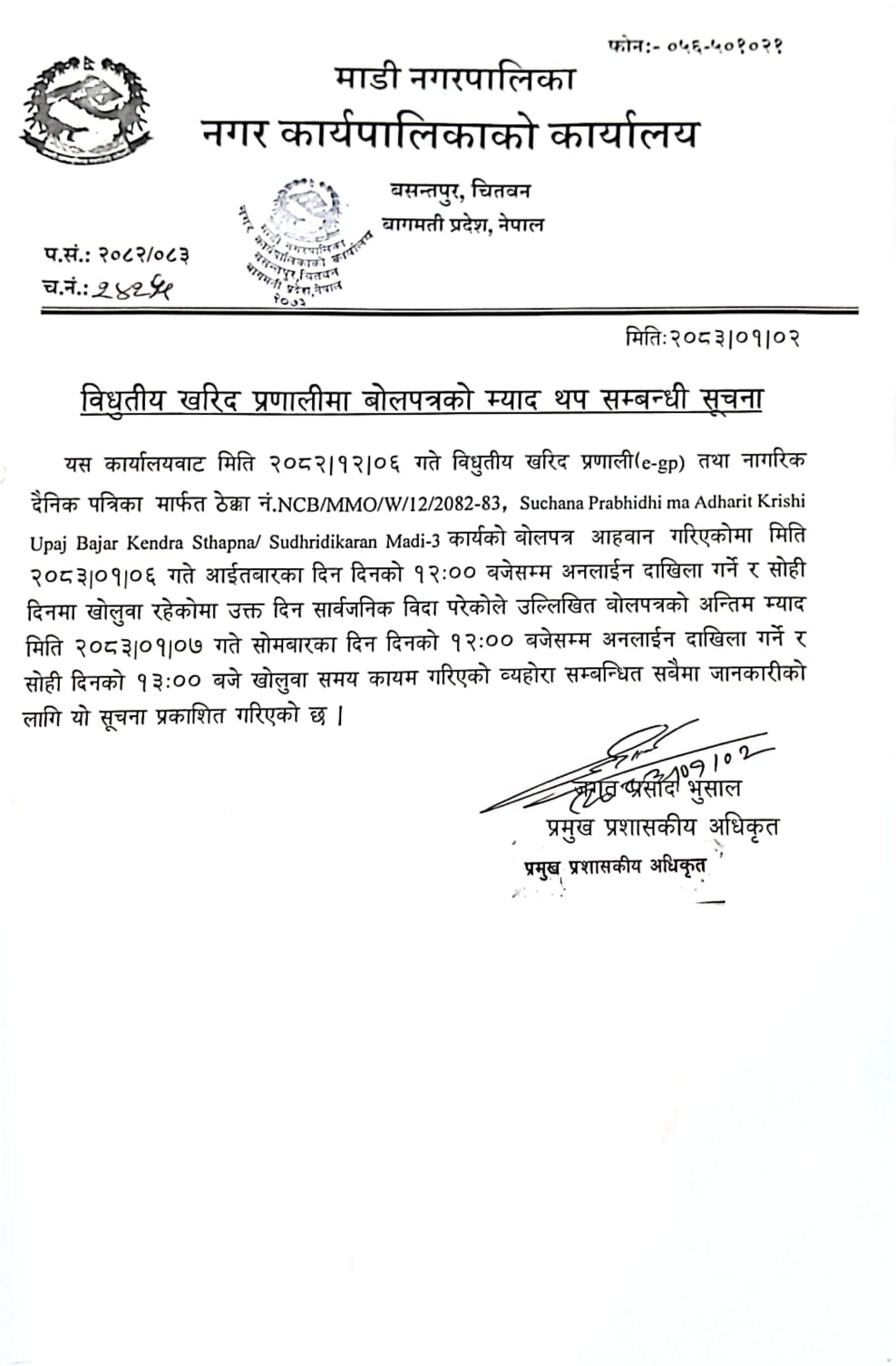 सार्वजनिक खरिद/बोलपत्र सूचना