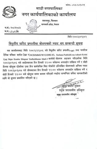 विद्युतिय खरिद प्रणालीमा बोलपत्रको म्याद थप सम्बन्धी सूचना ।