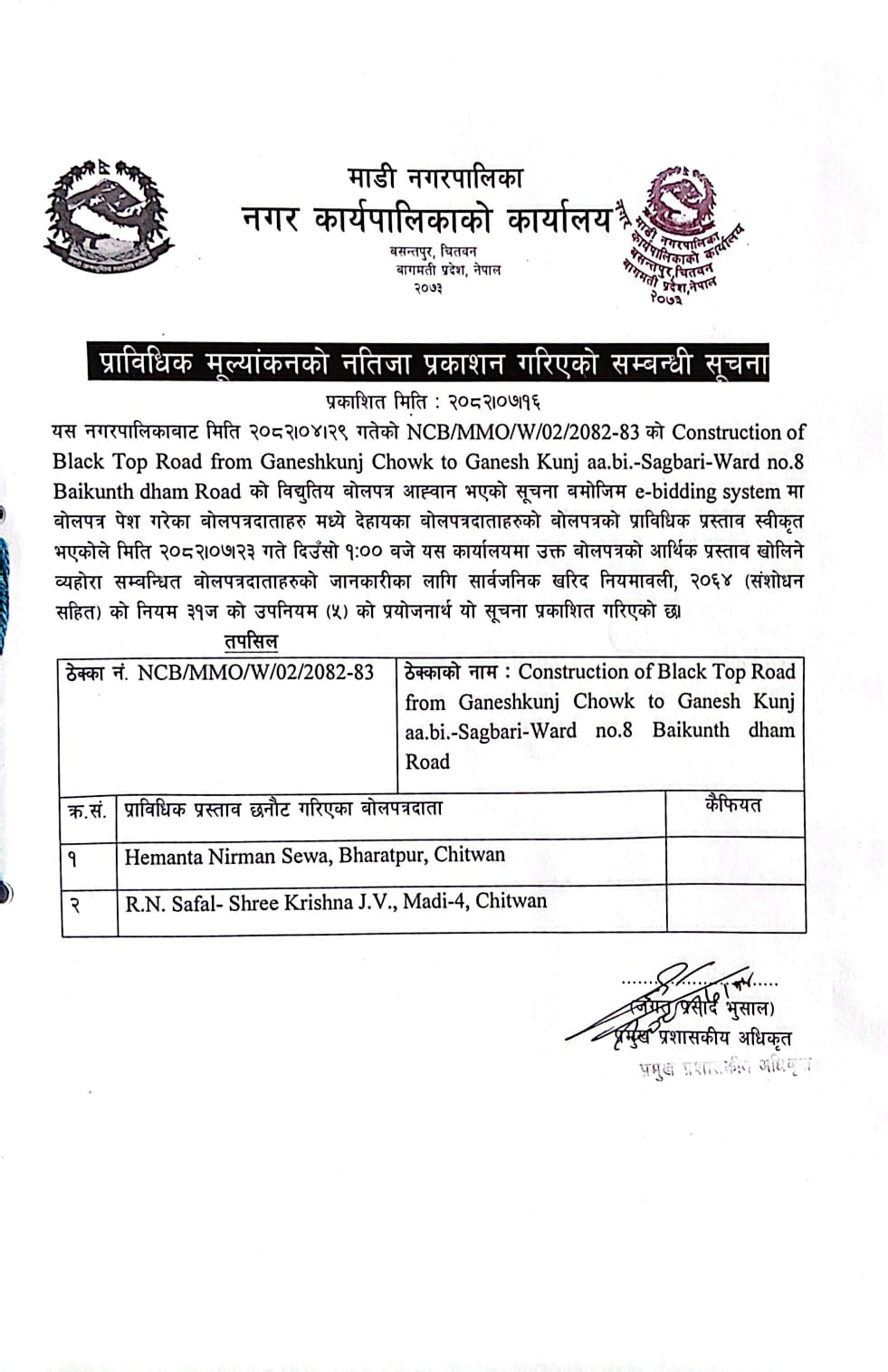प्राविधिक मुल्याकंन सहितको नतिजा प्रकाशन गरिएको सम्बन्धी सूचना