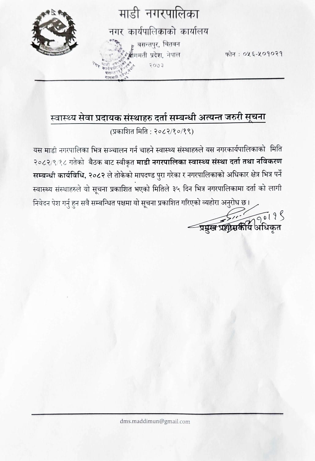 स्वास्थ्य सेवा प्रदायक संस्थाहरु दर्ता सम्बन्धी अत्यन्त जरुरी सूचना
