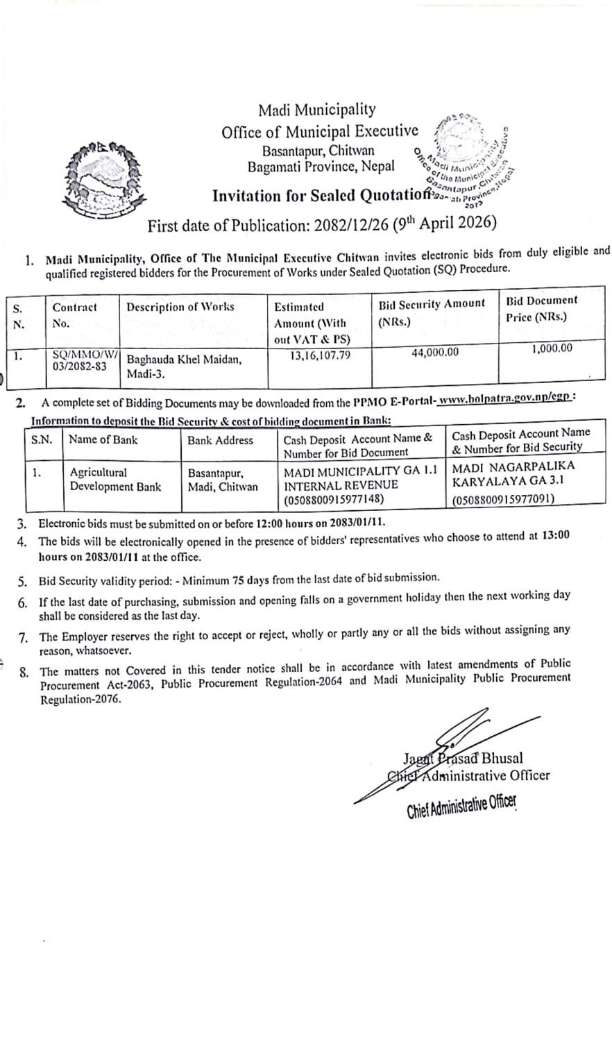 यो सूचना मिति २०८२ चैत्र २६ गते बिहीवारको The Rising Nepal पत्रिकामा समेत प्रकाशित छ ।