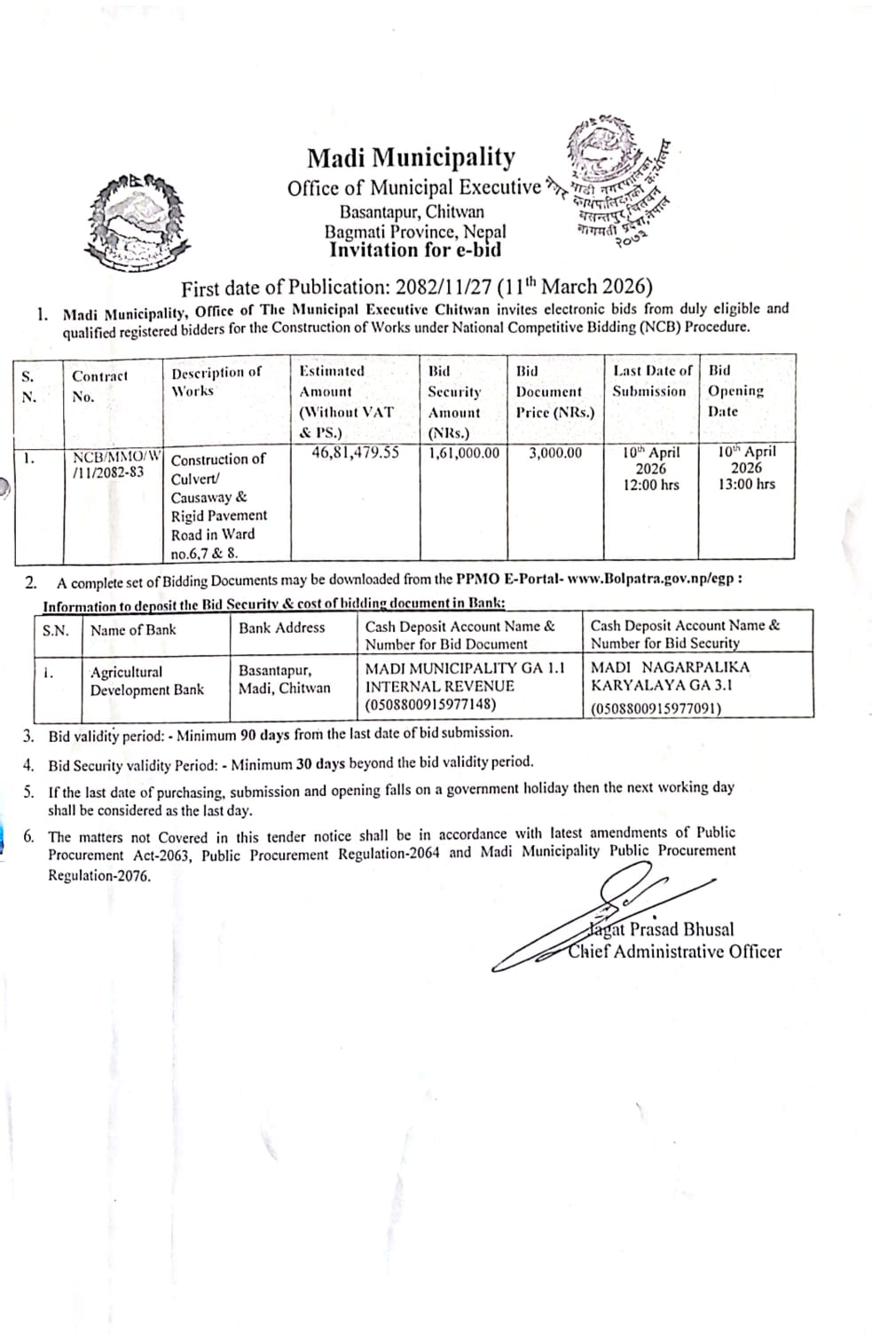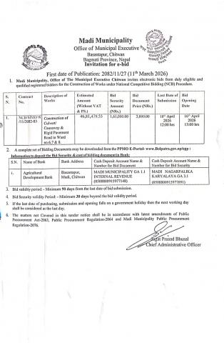 माडी नगरपालिकाको कृषि कार्यक्रमहरुमा सहभागी हुनका लागि प्रस्ताव आव्हान सम्बन्धी सूचना