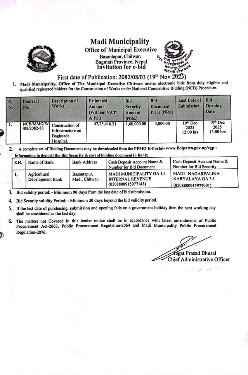 बघौडा अस्पतालमा पूर्वाधार निर्माण सम्बन्धी बोलपत्र आव्हानको सूचना