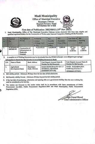 माडी मा.वि.मा पूर्वाधार निर्माण सम्बन्धी बोलपत्र आव्हानको सूचना