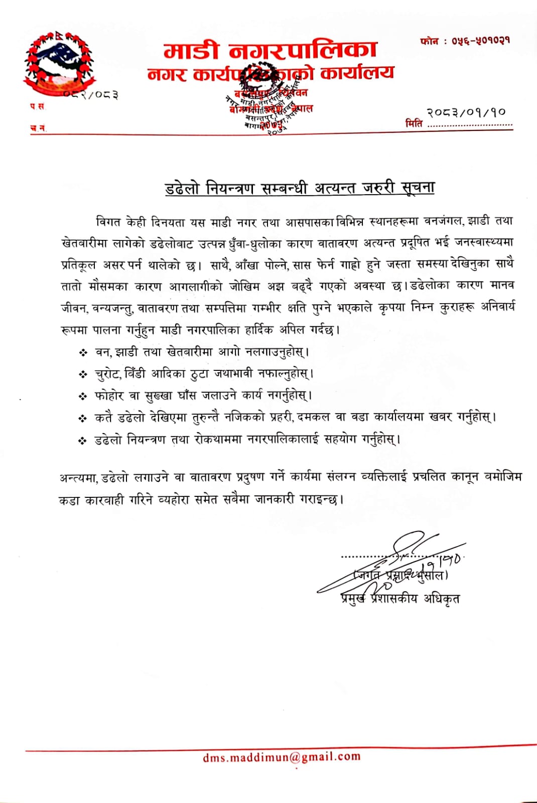 » डढेलो नियन्त्रण सम्बन्धी अत्यन्त जरुरी सूचना