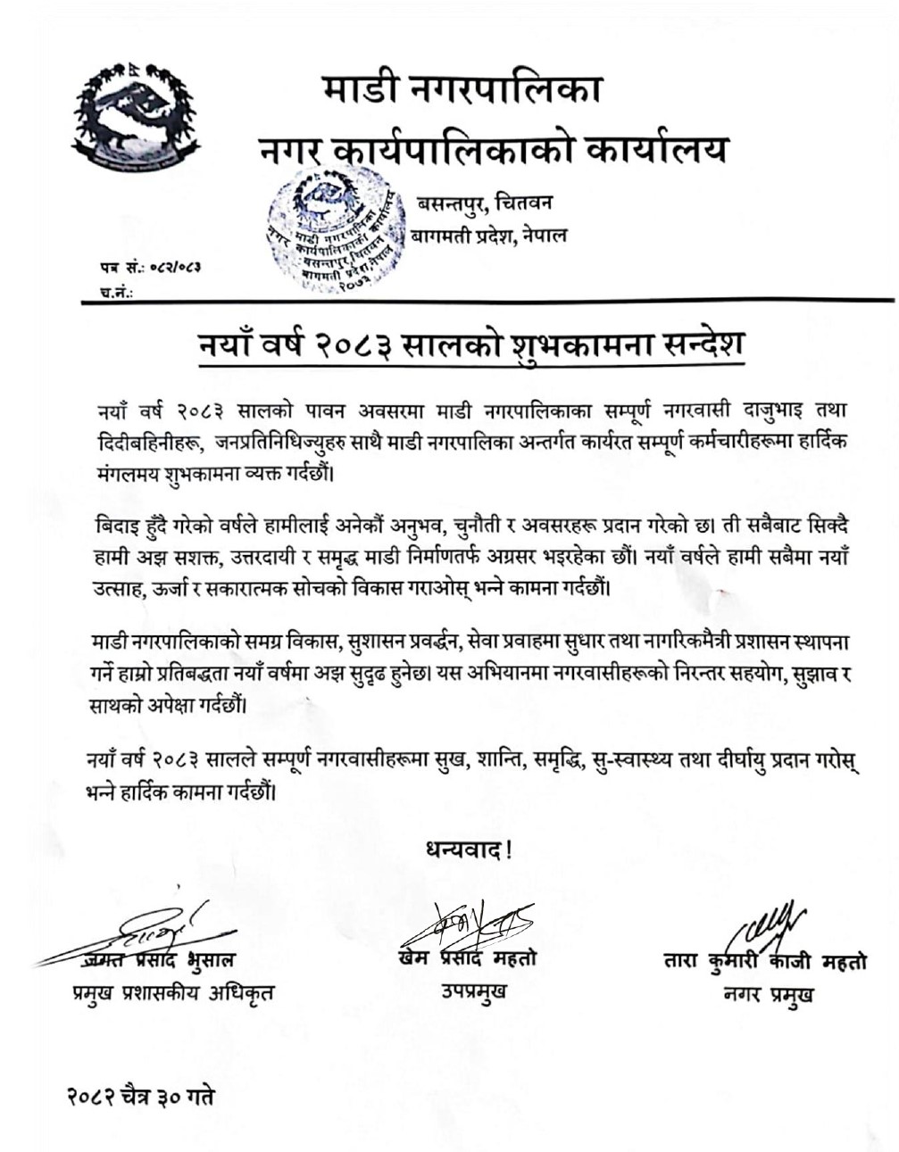 » नयाँ वर्ष २०८३ सालको शुभकामना सन्देश